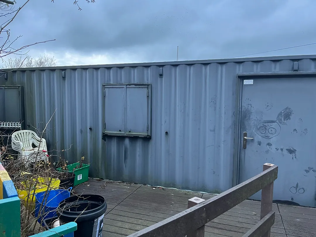 This commission is to design and install mural work on the outside of the Den and potentially the fencing surrounding the small deck. The mural work should be installed on the front aspect of the Den structure only as the sides are not accessible to the public.